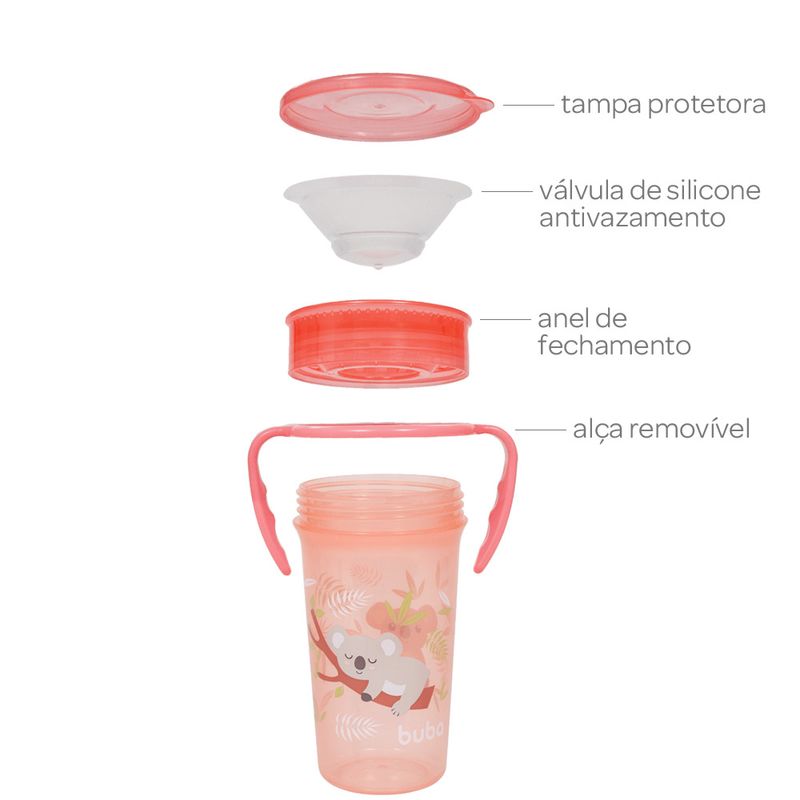 KIT 2 COPOS 360 DE TREINAMENTO BEBE ANTIVAZAMENTO TRANSIÇÃO INFANTIL COM ALÇA BUBA Cor:Rosa/Coala