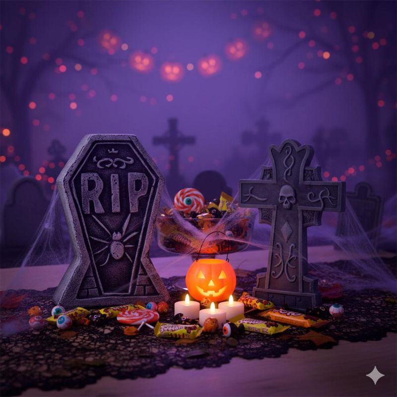 Complete sua decoração de Halloween com este kit de 2 lápides decorativas feitas em isopor leve e resistente. Cada peça tem pintura realista de pedra e detalhes em relevo, como caveiras, aranhas e inscrições de “RIP”, criando um visual autêntico e sombrio. Ideais para festas temáticas, jardins e cenários de terror, as lápides são fáceis de posicionar, leves para transportar e garantem um toque assustador que impressiona. Kit com 2 lápides Isopor leve e prático Pintura realista de pedra Detalhes em relevo