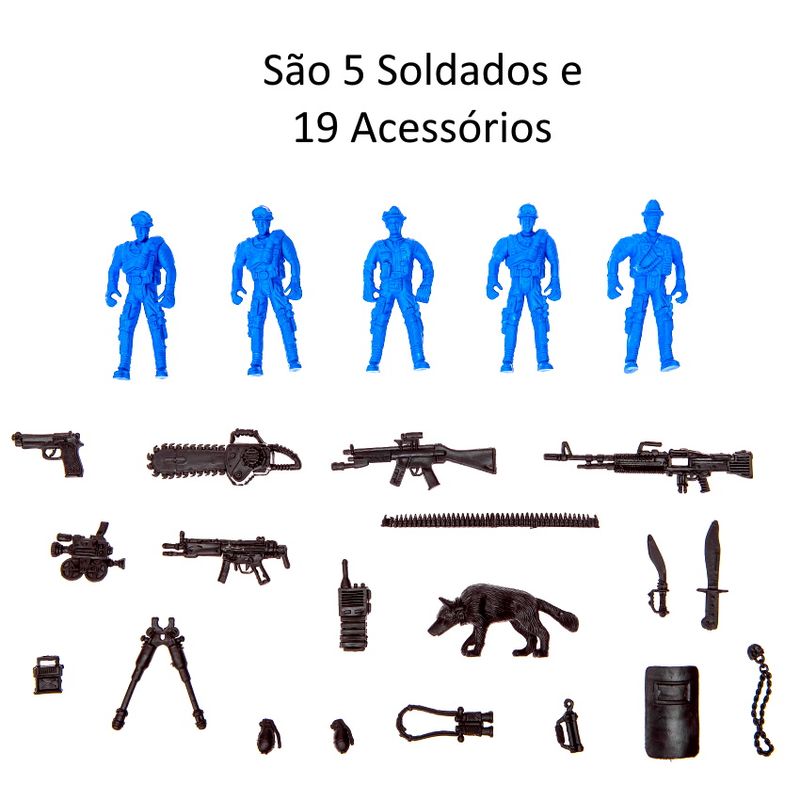 Monte as trincheiras e divirta-se com o kit de Maletas Militar e Policial. São 11 soldados com trincheiras, acessórios militares e uma maleta com alça e travas para levar a brincadeira para onde quiser. São 42 peças no total, incluindo as maletas.