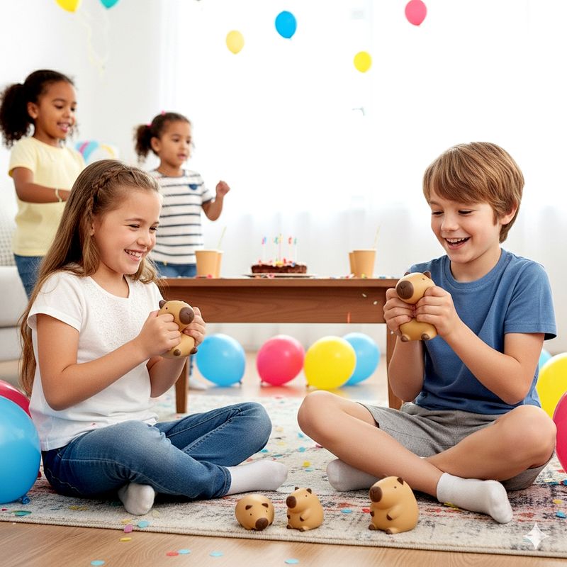 O Brinquedo Capivara Squishy é pura fofura e diversão para todas as idades! Feito com material super macio e elástico, ele pode ser puxado, apertado e esticado sem perder a forma, proporcionando uma sensação agradável ao toque. Ideal como brinquedo antiestresse, ajuda a aliviar a tensão e estimular a sensorialidade de forma lúdica. Com design inspirado na simpática capivara, é perfeito para presentear, decorar ou usar como lembrancinha em festas infantis. Um item divertido, relaxante e irresistivelmente apertável!