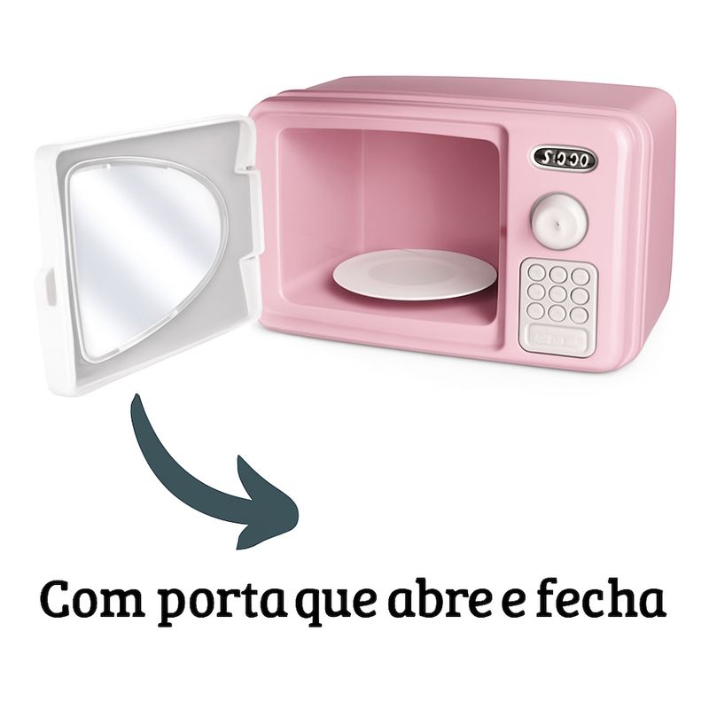 Kit 3 em 1 Geladeira Cafeteira e Micro-ondas Rosa Cozinha de Brinquedo Infantil com Acessórios Le Chef Original