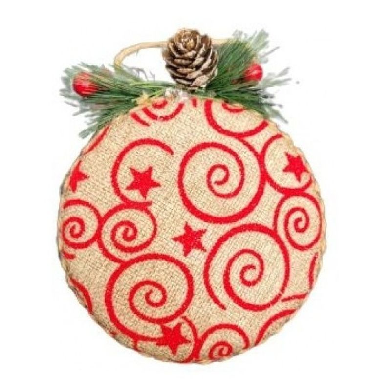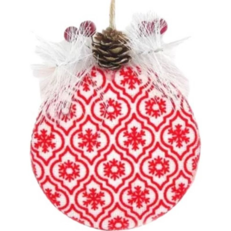 Kit 4 Bola de Natal 11,5cm Achatada Arabesco com Pinha