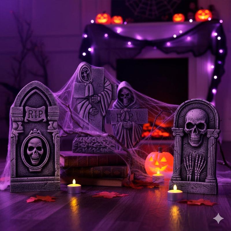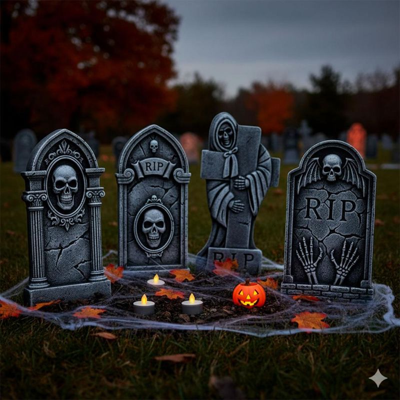 Crie um cenário sombrio e impressionante com este kit de 4 lápides de Halloween. Fabricadas em isopor, elas possuem pintura realista de pedra e detalhes em relevo de caveiras, trazendo um visual autêntico para qualquer decoração temática. Ideais para ambientes internos ou externos, essas lápides são leves, fáceis de posicionar e transformam instantaneamente qualquer espaço em um cemitério assustador. Perfeito para festas, casas e eventos que pedem um toque macabro. Kit com 4 lápides Grande 41 cm Isopor leve e resistente Pintura realista de pedra Relevo de caveiras detalhadas