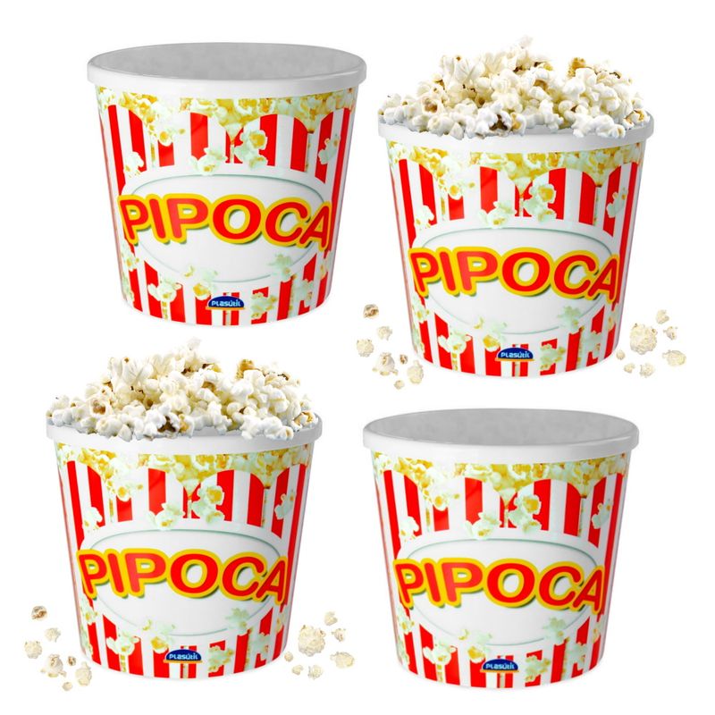 Kit com 4 Pote Balde de Pipocas Clássico Oval 2,1 Litros - Plasútil
