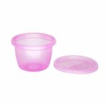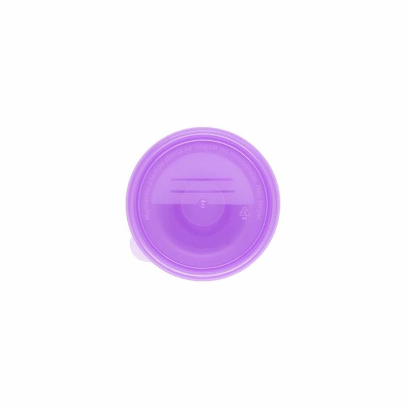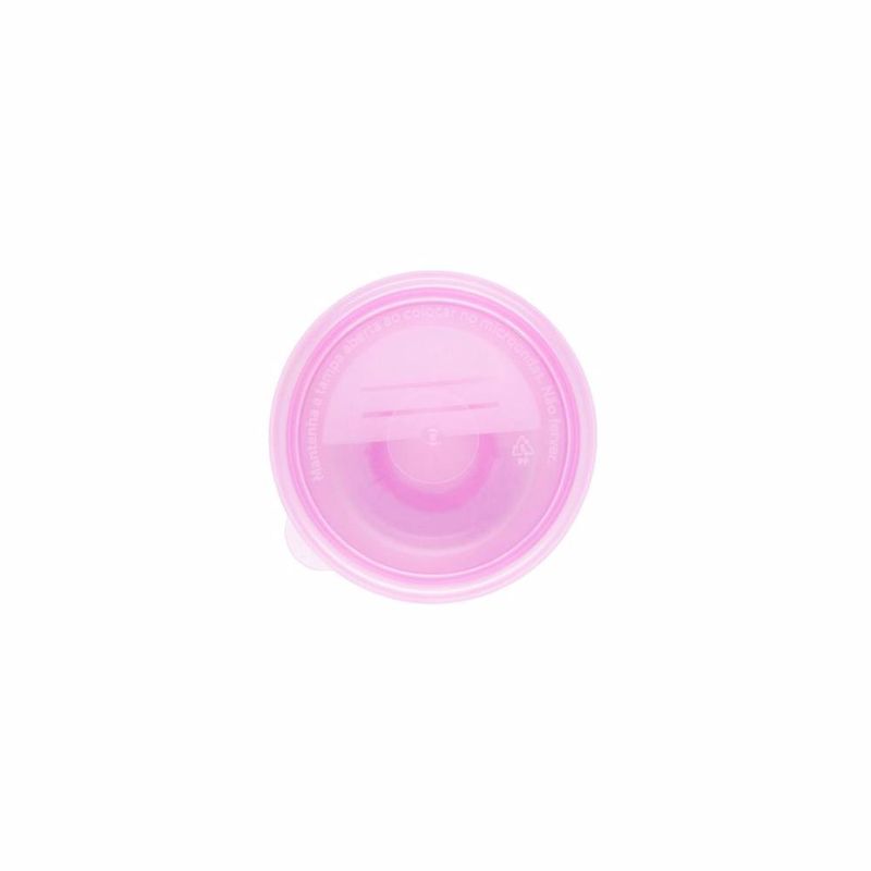 Recomendações de Uso: Use sempre com a supervisão de um adulto, retirar o produto da embalagem, lavar bem antes do primeiro uso com sabão líquido neutro e deixar secar naturalmente, pode ser lavado na lava-louças, pode ser utilizado no congelador e micro-ondas, guardar em local seco, manter longe do alcance do sol, não ferver, não usar em forno ou fogão convencional. Verifique a integridade das partes e descarte se houver danos, não é possível substituí-las. Os potes podem ser levados ao micro-ondas para aquecer ou descongelar sem a tampa.