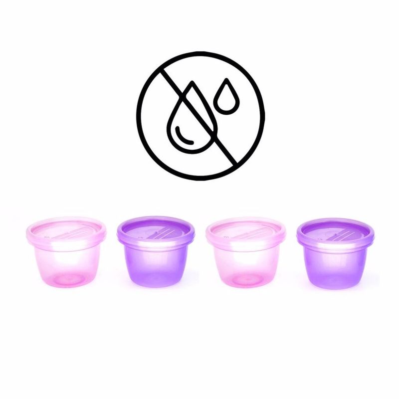 O Kit é composto por 4 potes com tampa de 133 ml cada. Eles foram desenvolvidos para que os pais tenham muito mais praticidade e segurança no cuidado com a alimentação dos seus filhos, pois são ideais para que os alimentos preferidos das crianças estejam sempre higienicamente armazenados e com total organização.