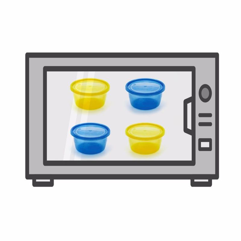 Recomendações de Uso: Use sempre com a supervisão de um adulto, retirar o produto da embalagem, lavar bem antes do primeiro uso com sabão líquido neutro e deixar secar naturalmente, pode ser lavado na lava-louças, pode ser utilizado no congelador e micro-ondas, guardar em local seco, manter longe do alcance do sol, não ferver, não usar em forno ou fogão convencional. Verifique a integridade das partes e descarte se houver danos, não é possível substituí-las. Os potes podem ser levados ao micro-ondas para aquecer ou descongelar sem a tampa.