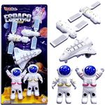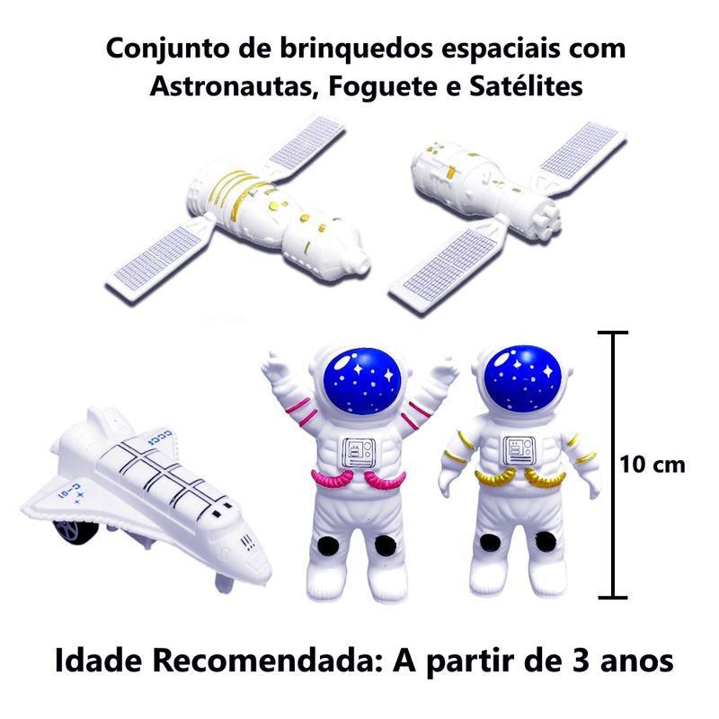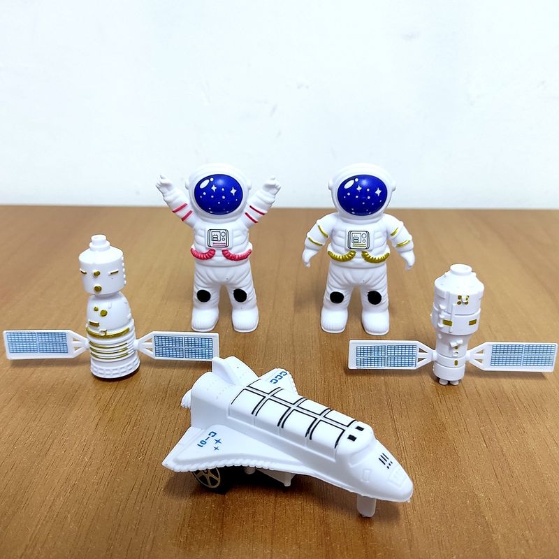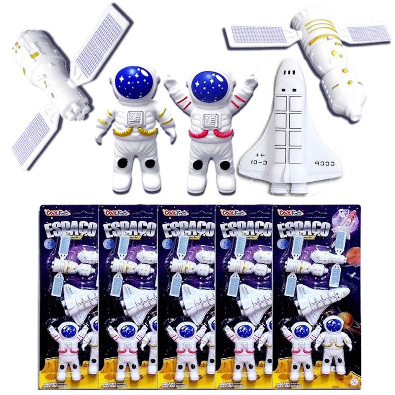 Conjunto de Brinquedos Espaciais Astronauta com Satélites e Nave a Fricção Infantil Para Lembrancinhas de Festas Infantis - 5 Cartelas