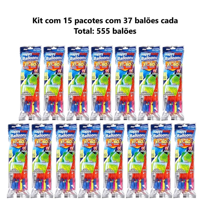 Kit Balões de Água para Guerrinha Infantil 555 Unidades Brincadeira de Verão em Família Amigos Crianças Chácara Praia Revenda e Atacado