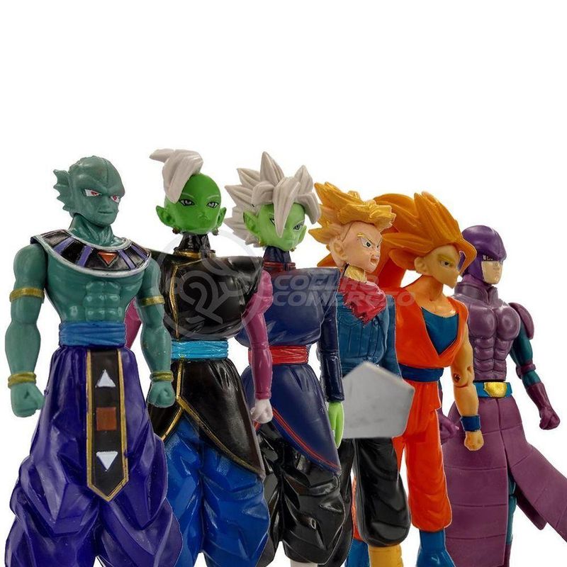 Kit 6 Bonecos Dragon Ball Super Goku SSJ3, Zamasu - Fusão, Trunks, Hit, Deus da Destruição Gin 16