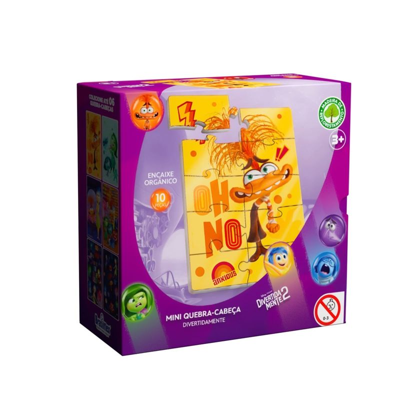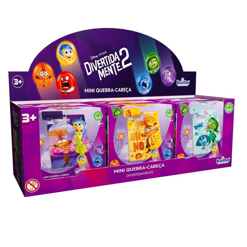 Com o Kit 6 Mini Quebra-Cabeça Divertidamente, a brincadeira vai ser pura alegria, coragem, raiva, e muita diversão. Cada mini quebra-cabeça traz uma cena colorida e encantadora com os personagens do filme Divertida Mente, ideal para estimular a mente das crianças com atividades que envolvem lógica, coordenação e imaginação.