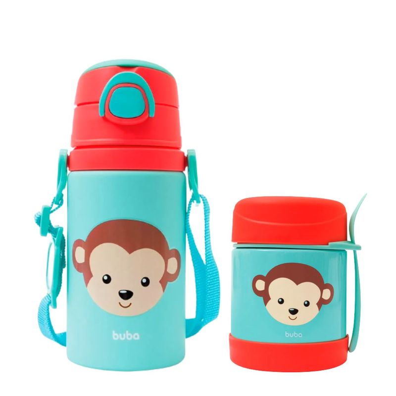 Kit Alimentação Animal Fun Macaco Garrafa e Pote Term Buba