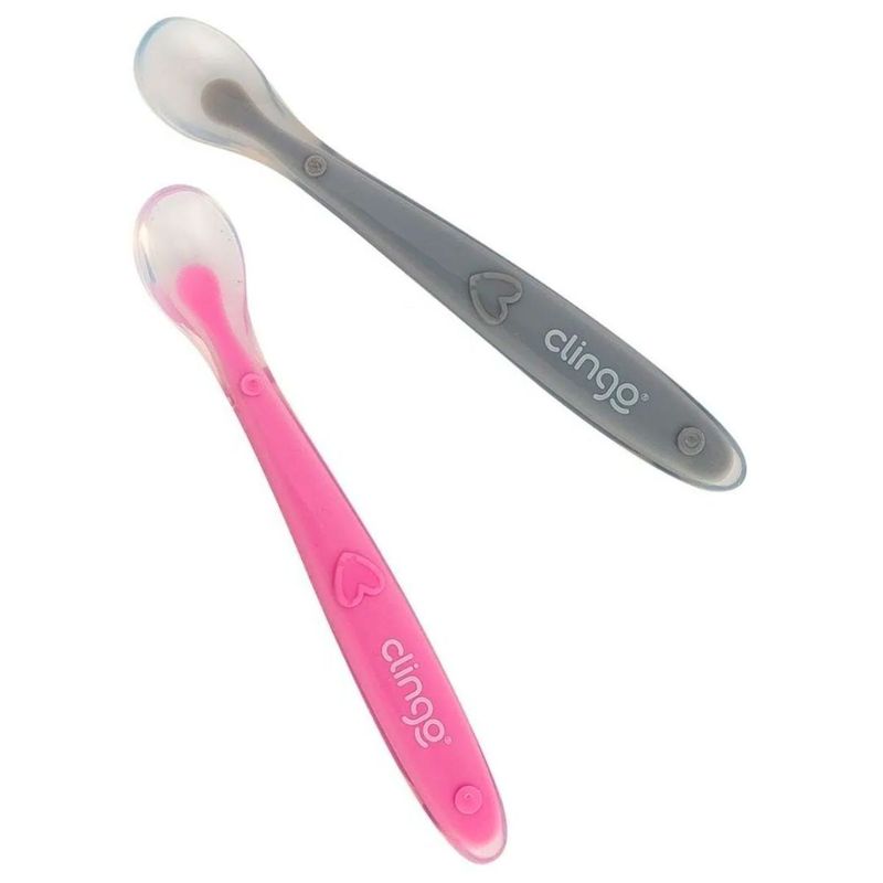 KIT 2 COLHERES SILICONE PREMIUM ROSA E CINZA 6M+ CLINGO