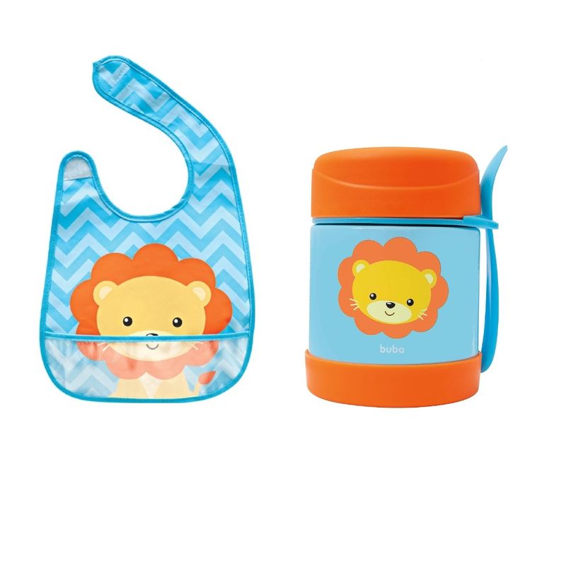 Kit Babador Com Bolso E Pote Térmico Animal Fun Leão - Buba KIT09826B
