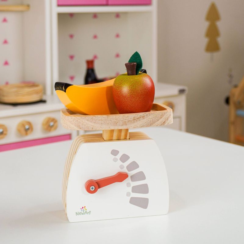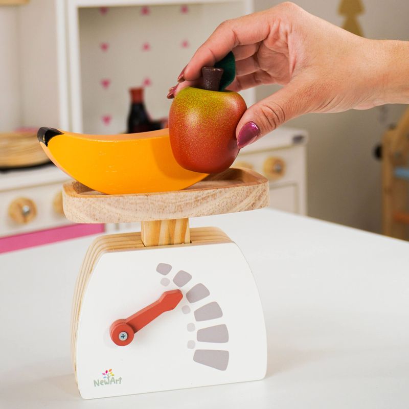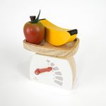 Este brinquedo ajuda no desenvolvimento: Coordenação Espacial Coordenação Motora Imaginação Organização Criatividade Kit contém: 1 balança, 1 banana,1 maça. Dimensões: Balança: Altura: 14cm Largura: 12cm Comprimento: 9cm Banana: Altura: 4cm Largura: 14cm Comprimento: 3cm Maça: Altura: 6cm Largura: 5cm Comprimento: 5cm Idade Recomendada: A partir de 3 anos. Material: Madeira Reflorestada e tratada Produto Certificado