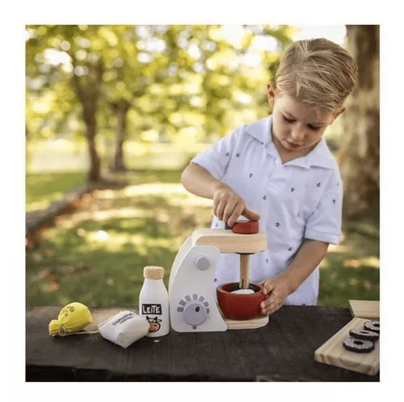 Com o nosso Kit de Batedeira em Madeira as crianças vão poder brincar de cozinha em grande estilo, levando a imaginação para um mundo de faz de conta, onde elas vivenciam situações de seu cotidiano de maneira lúdica e criativa! Às batedeiras são fabricadas 100% em madeira, garantindo assim uma maior durabilidade, além de estimular os sentidos pela sua textura, peso e cheiro. Este Brinquedo ajuda no desenvolvimento: Coordenação Espacial