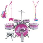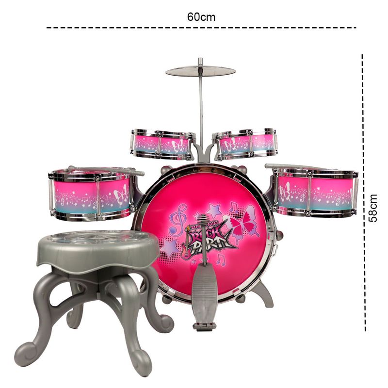 A Criançada vai adorar a brincadeira com a Super Bateria Rock Party, a diversão é garantida, além de desenvolver a coordenação motora, desenvolvendo as habilidades visuais e percepção sonora. Guitarra com Microfone e Luzes coloridas, para brincadeira de cantar e dançar como uma estrela do Rock, estimula o desenvolvimento de habilidades auditiva, motora, social, autoestima, memória e raciocínio lógico. Microfone duplo com pedestal e luzes coloridas. Para brincar de cantar e se sentir como uma estrela! Conecte seu MP3 Player ou smartphone e deixa a brincadeira mais divertida. Benefícios: - Estimula os sentidos - Estimula a coordenação motora - Ajuda na interação da criança com outras crianças Características do Produto: - Indicação: +03 Anos. - Tipo de Conector: Cabo P2 (Compatível com MP3 e Smartphone). - Alimentação: 03 Pilhas AA (Não Inclusas) * - Certificação Inmetro. Composição - Plásticos PP, PS, PVC e ABS. Dimensões - Guitarra – 48 cm x 19 cm x 5,5 cm. - Microfone – 83 (Alt. Maior) / 55 (Alt. Menor) x 20,5 cm x 20,5 cm. - Caixa Guitarra – 43.8 cm x 32.5 cm x 5.7 cm - Microfone Duplo – 94 cm x 6 cm x 21 cm. - Caixa Microfone Duplo - 33 cm x 21 cm x 6.2 cm - Caixa Bateria - 46 cm x 32.1 cm x 16.3 cm - Tambores pequenos 12 x 5 cm - Tambores médios 15 x 9 cm - Baquetas 23 cm - Banco 18 x 18 cm - Bumbo 30 x 16 cm - Prato 16 cm - Altura da bateria: 51 cm - Altura do banquinho: 15 cm Contém: - 01 Pedestal Montável. - 01 Pedestal Duplo Montável - 03 Microfone. - 01 Guitarra. - 02 Cabo P2 (Cabo Auxiliar não Incluso). - 2 Tambores pequenos - 2 Tambores médios - 2 Baquetas - 1 Banco - 1 Suporte - 1 Bumbo - 1 Prato - 1 Pedal - 1 Ventosa