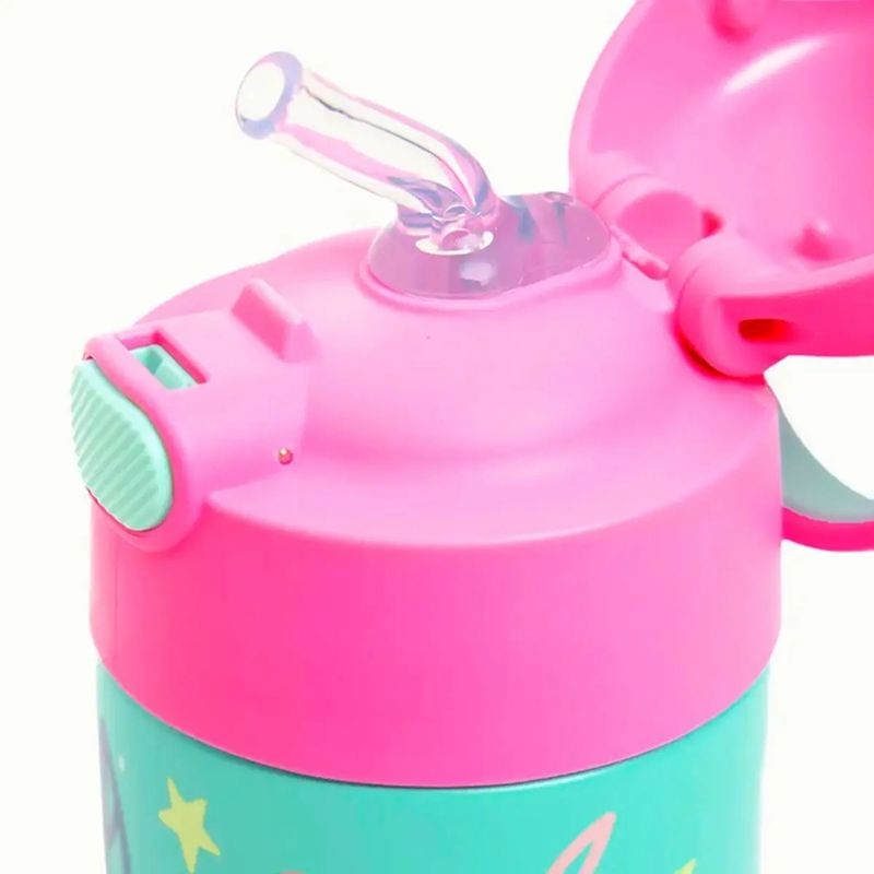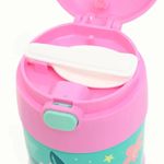 Dimensões (AxLxP): 26,5cm x 19cm x 11,5cm A Garrafa Térmica Infantil Thermos Funtainer 355ml é a escolha ideal para manter as crianças hidratadas de forma prática e divertida. Com isolamento a vácuo, essa garrafa mantém a temperatura de sucos, água e outras bebidas frescas por até 12 horas, oferecendo aos pais a confiança de um produto durável e seguro, desenvolvido pela marca líder em térmicos infantis. Projetada para mãos pequenas, a Thermos Funtainer permite que a criança abra e feche com facilidade usando apenas uma mão, graças ao seu sistema de abertura intuitivo, ergonômico e higiênico, já que a tampa permanece fechada após o uso, sem contato com o ambiente. O canudo de silicone macio proporciona um toque suave ao beber, enquanto a alça externa integrada facilita o transporte, perfeita para a escola, passeios e atividades ao ar livre. ESPECIFICAÇÕES TÉCNICAS: Material: Aço inoxidável e plástico BPA Free (livre de Bisfenol A)