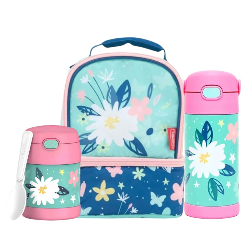 Kit Bolsa Mochila Térmica, Pote Térmico com Talher e Garrafa Térmica. A Bolsa Mochila Térmica Thermos é a escolha ideal para acompanhar o dia a dia do seu filho, seja na escola ou em passeios. Desenvolvida com materiais de alta qualidade, ela combina praticidade, segurança e um design encantador que deixa o momento do lanche ainda mais divertido. Seu interior possui isolamento térmico com espuma celular de alta performance, garantindo que os alimentos sejam mantidos na temperatura ideal por mais tempo. A tecnologia "Flex a Guard" com proteção antimicrobiana evita o acúmulo de bactérias e ajuda a controlar odores, assegurando higiene e frescor para os lanches. O revestimento interno é feito de LDPE, um material seguro e livre de PVC, ideal para crianças. ESPECIFICAÇÕES TÉCNICAS: Material: Isolamento térmico de espuma celular de alta qualidade, livre de PVC