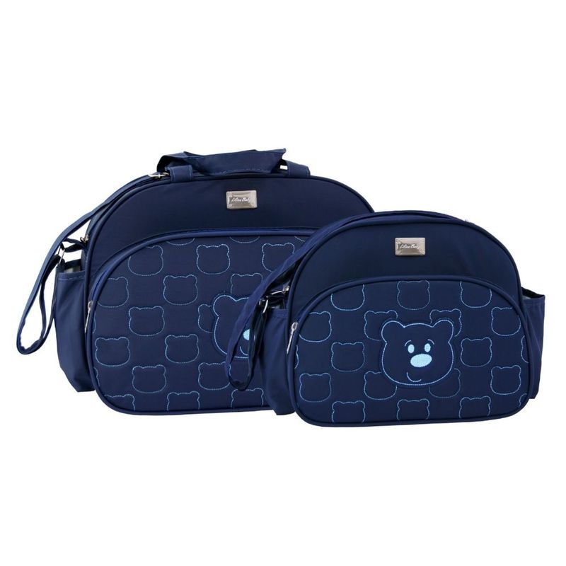Bolso externo na frente e compartimento nas laterais, alças transversais e de mão.