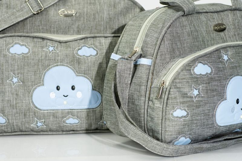 O kit contem duas bolsas com um lindo bordado moderno, e tamanho ideal para carregar as coisinhas do seu bebê para maternidade, passeios com a família e aproveitar ao máximo viagens com a mamãe e o papai.