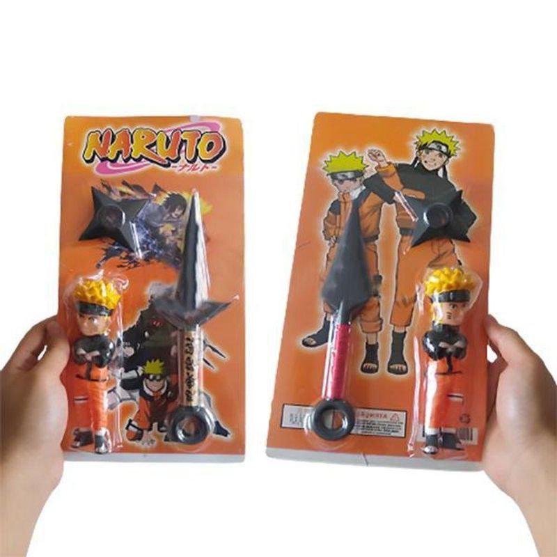 Kit Boneco Action Figure Naruto + 1 Shuriken Ninja + 1 Kunai