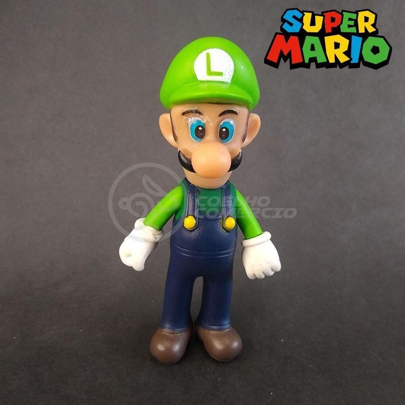 Kit Boneco Luigi Articulado Super Mario 13cm + Caneca nº9