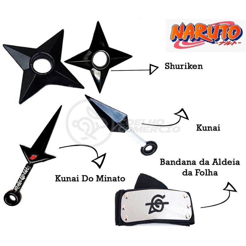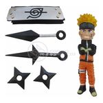 Kit Boneco Naruto 15cm + 2 Shuriken + 1 Bandana Da Folha Do Itachi Renegado + 2 Kunai