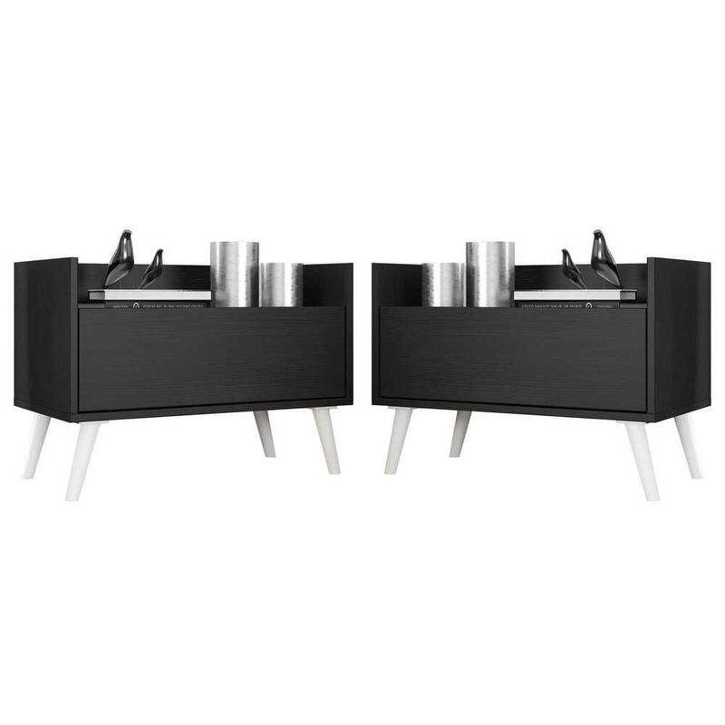 O Kit com 2 Mesas de Cabeceira 60 cm com Pés Retrô Multimóveis é uma solução prática para você deixar seu quarto mais bonito e complementar seu ambiente. Produzido em MDP com acabamento acetinado (cerca de 20% de brilho), que garante maior durabilidade e facilidade na limpeza, possui 1 gaveta com amplo espaço interno e corrediças metálicas que proporcionam mais leveza no manuseio. Os pés retrô, em polipropileno, dão um charme especial ao móvel deixando-o com um visual leve e permitindo você compor um ambiente com ar vintage e moderno ao mesmo tempo. Seu design clean permite que seja utilizado em diferentes ambientes, adaptando-se conforme sua necessidade.