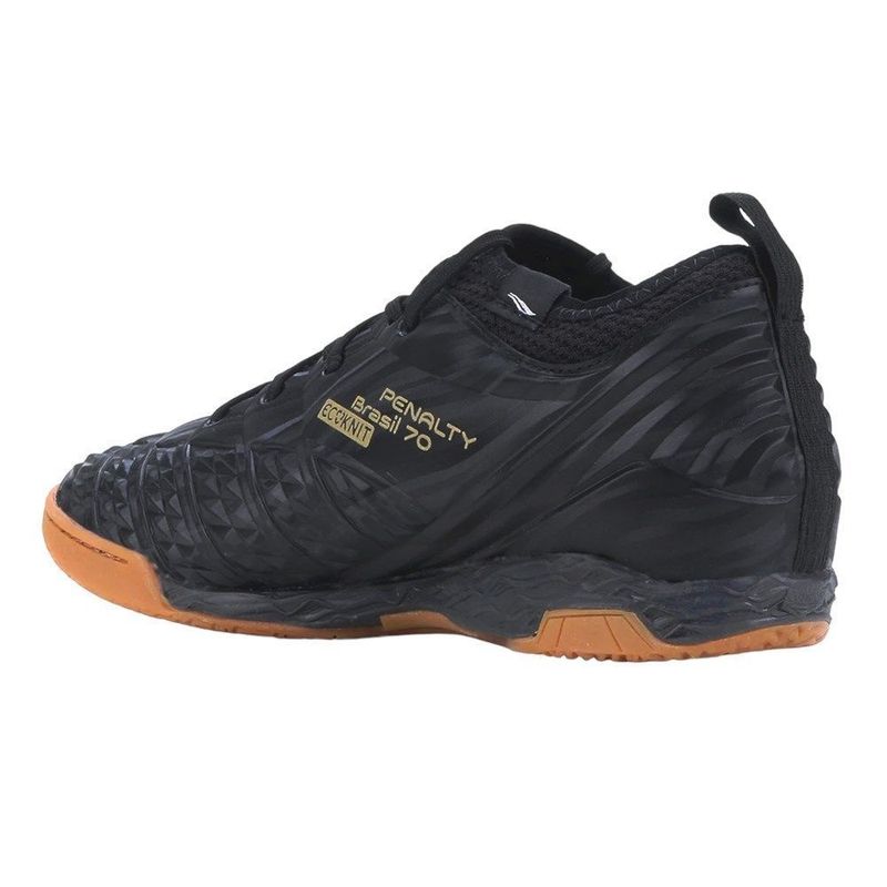 Faça jogadas incríveis em quadra com total conforto junto a Chuteira Futsal Penalty Brasil 70 Locker XXI. Seu cabedal confeccionado em material sintético apresenta superfície texturizada, concedendo maior controle de bola, ampliando a performance em jogo. Traz entressola em EVA, ligando-se ao solado emborrachado, esse que apresenta as tecnologias Ultra Grip e Non Marking, fornecendo maior estabilidade e conforto a cada passada, além de entregar total aderência e tração dentro das quadras. Seu fechamento é realizado por cadarços, possuindo o auxílio de colarinho elástico, tornando o ato de calçar mais rápido e prático. As palmilhas removíveis são produzidas em PU, facilitando a higienização da peça. O design predominantemente em preto, oferece detalhes em dourado, dando maior destaque a peça. Já o meião, é confeccionado em materiais resistentes e traz a tecnologia Flot que proporciona maior ventilação, aumentando a respirabilidade. Seu tecido é um isolante térmico e conta com faixa tensora nos tornozelos para mais proteção Referência: 124216.9040.
