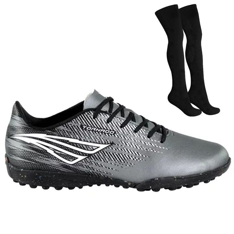 A Chuteira Society Penalty Tornado Infantil é a escolha perfeita para os pequenos craques que desejam brilhar nos gramados artificiais . Com um cabedal em material sintético durável e reforçado pelo sistema Micropower, essa chuteira proporciona resistência e suporte durante o jogo, garantindo que as crianças possam se movimentar com confiança. A tecnologia Hiper Flex assegura flexibilidade máxima, facilitando a execução de dribles e jogadas rápidas. O modelo conta com amarração por cadarço, palmilha em EVA macia para maior conforto e a parte interna do calcanhar forrada para um ajuste seguro e acolhedor. A lingueta flexível complementa o conforto, proporcionando um ajuste firme. Além disso, a entressola e o solado em borracha contam com a tecnologia Hiper Flex assegurando flexibilidade máxima, facilitando a execução de dribles e jogadas rápidas. Com a Chuteira Society Penalty Tornado Infantil, seus pequenos estarão prontos para dominar os jogos com estilo e desempenho. Já o meião foi produzido em um tecido especial de poliamida com poliéster e elastano, por isso, ele é perfeito para quem busca uma peça elástica e ao mesmo tempo extremamente leve e muito confortável. Seu design todo liso na cor preta, possibilita assim, uma maior versatilidade ao montar seus uniformes. O tamanho do meião vai variar de acordo com a numeração da chuteira.