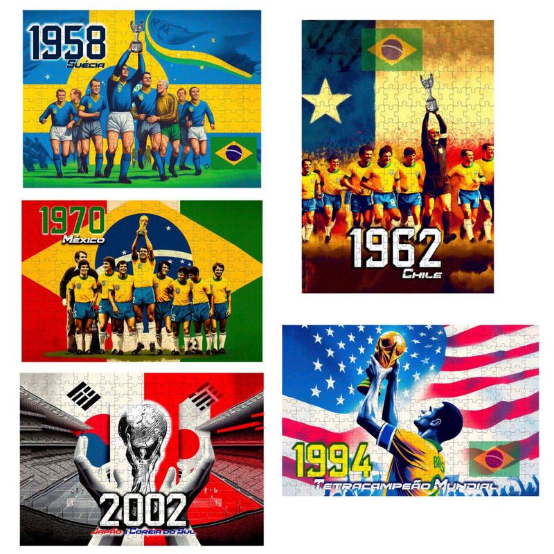 Kit Coleção 5 quebra-cabeças 60 peças Brasil Campeão das copas