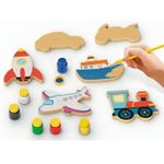 Kit colorir e brincar da Junges com 6 veículos em madeira de MDF.
