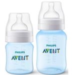 Mamadeiras Anti Colic, reduz agitação do bebê causada por cólicas especialmente à noite, formato exclusivo, permite ao bebê segurar facilmente em qualquer direção.