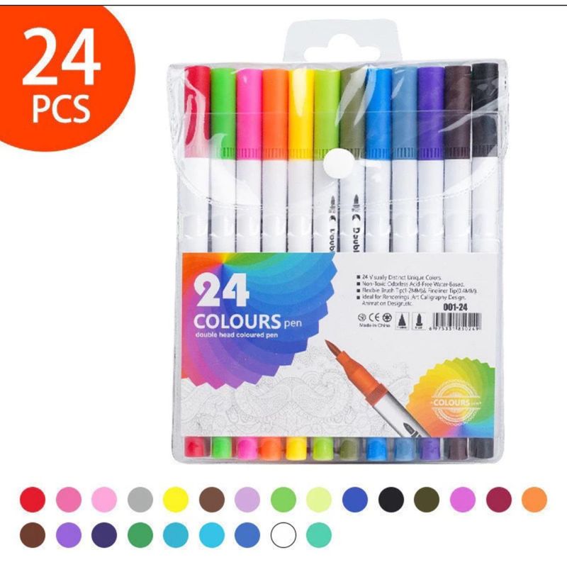O Kit com 24 Canetas Marcadoras de Ponta Dupla para Aquarela é perfeito para artistas, estudantes e entusiastas da arte que buscam versatilidade e qualidade em suas criações. Composto por 24 canetas de cores vibrantes, cada uma possui duas pontas distintas: uma ponta pincel flexível para traços expressivos e preenchimentos, e uma ponta fina de 0.4mm para detalhes precisos e contornos. A tinta à base de água é aquarelável, permitindo efeitos de sombreamento e mistura de cores suaves. Ideal para lettering, ilustrações, esboços, bullet journals e muito mais. Especificações Técnicas Quantidade de Canetas: 24 unidades Tipo de Ponta: Dupla – Ponta pincel flexível e ponta fina de 0.4mm Tinta: À base de água, aquarelável Cores: 24 cores sortidas e vibrantes Comprimento de Cada Caneta: Aproximadamente 15,4 cm Material do Corpo: Plástico resistente Indicação de Uso: Lettering, ilustrações, esboços, bullet journals, caligrafia e pintura artística Embalagem: Estojo plástico transparente para organização e transporte? Benefícios: Versatilidade: Duas pontas em uma única caneta para diferentes técnicas de desenho e pintura. Efeitos Aquareláveis: Tinta à base de água que permite criar efeitos de aquarela com facilidade. Cores Vibrantes: Paleta de 24 cores intensas que proporcionam resultados impressionantes. Conforto no Uso: Design ergonômico que facilita o manuseio durante longas sessões de arte.