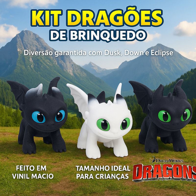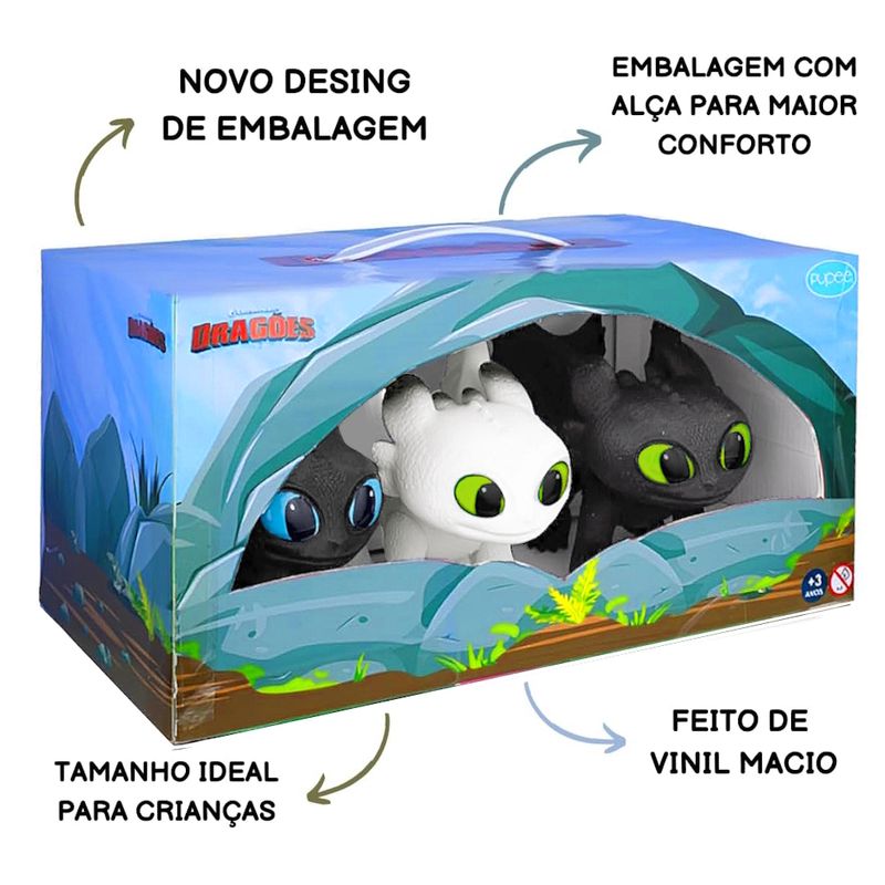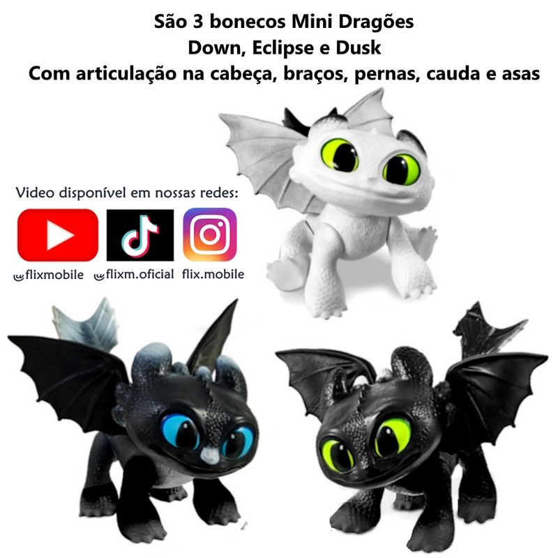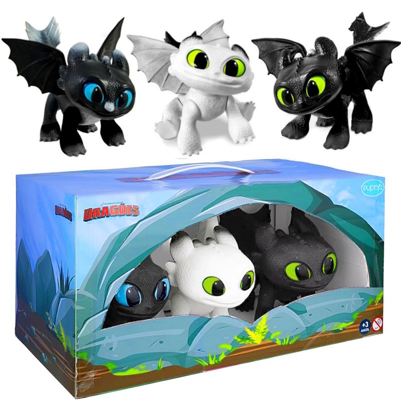 Coleção de Brinquedos Infantil Como Treinar Seu Dragão Mini Dragões Dawn, Dusk E Eclipse Pupee
