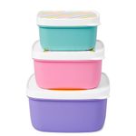 - Conjunto com 6 peças, que inclui 3 porta snacks de tamanhos diferentes e tampas de enxaixe que mantêm os alimentos frescos;