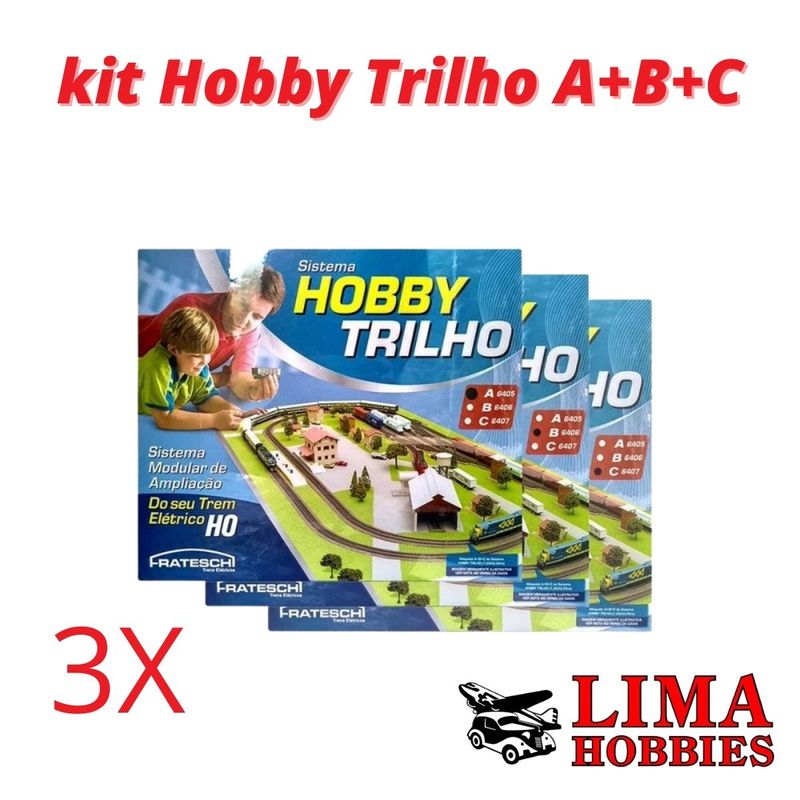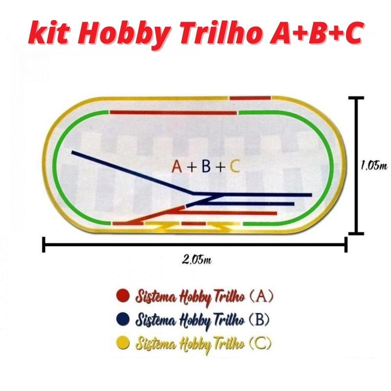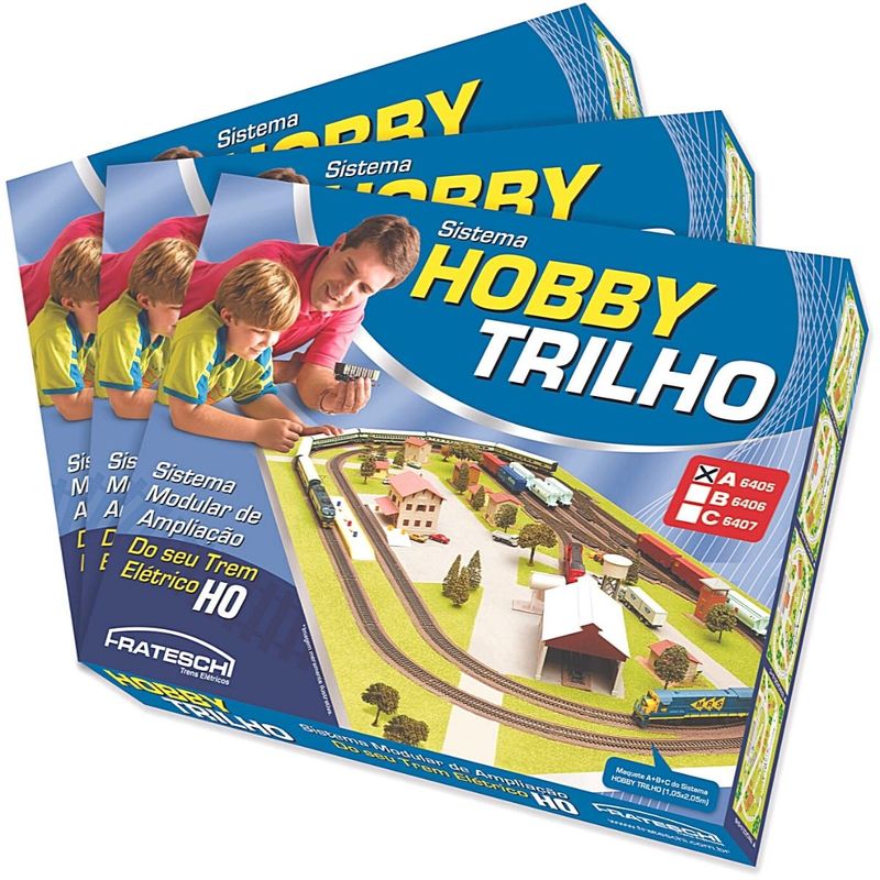 Kit com as 3 caixas A, B e C para expansão da caixa básica inicial, Sistema Hobby Trilho. Proporciona o aumento do traçado da maquete, na escala HO - 1:87.