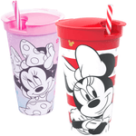 Kit Copos Minnie Vermelha e Rosa 540 ml com Compartimento 2 Unidades