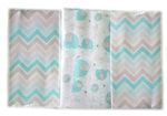 O conjunto é composto por com 3 Cueiros (50x80cm), confeccionados em tecido 100% algodão, para proporcionar um toque suave e confortável sobre a pele delicada do bebê.