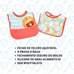 Todo o conjunto é muito leve e facilita a viagem! Cada conjunto vem com 2 lindos babetes de design e um bolso em seis opções de Marcus, o filhote de leão, Pokey, o leitão, Lola, a girafa, Ollie, o elefante, Willo, a baleia e Lucas, o hipopótamo.
