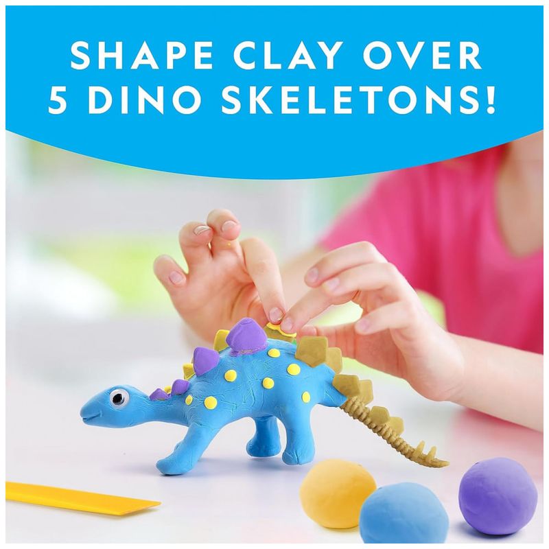 Molde argila sobre 5 Esqueletos de Dinossauros! Projete coloridas figuras de dinossauros moldando as 5 cores de argila sobre os 5 esqueletos de dinossauros: T-Rex, Estegossauro, Triceratops, Dimetrodon, Brachiossauro. Use a ferramenta de escultura e 30 olhos móveis para adicionar mais personalidade! Crie Designs Únicos! Com este kit de artesanato de argila, as crianças podem deixar fluir sua imaginação e criatividade! As 5 cores de argila são fáceis de moldar e modelar ao redor dos esqueletos de dinossauros. As crianças podem misturar e combinar cores para criar seus próprios designs divertidos! Tudo o que as Crianças Precisam! Este completo kit de artesanato de argila de secagem ao ar inclui tudo o que as crianças precisam para fazer seus próprios dinossauros únicos: 5 cores de argila de secagem ao ar (vermelha, azul, roxa, amarela, verde), 5 esqueletos de dinossauros, 30 olhos móveis e uma ferramenta de escultura. Aprenda Divertidas Curiosidades sobre Dinossauros! O Guia de Aprendizagem colorido incluído está repleto de informações sobre os cinco tipos de dinossauros incluídos no kit, bem como sobre como os cientistas utilizam fósseis para entender como os dinossauros realmente eram! Brinquedos Educativos de Alta Qualidade! Orgulhamo-nos de produzir brinquedos educativos práticos de alta qualidade, e todos os nossos produtos são apoiados por um serviço excepcional.