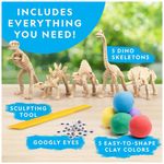 Componentes Incluídos: 5 Cores de Argila de Secagem ao Ar, Esqueletos de Dinossauros, Ferramenta de Escultura, Guia de Aprendizagem,