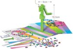 Material: ferramenta de enrolar papel, tiras de papel, cola, elástico, aplicador de elástico com uma ponta de espuma e instruções detalhadas
