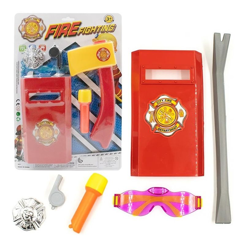 KIT BOMBEIRO INFANTIL COM ESCUDO + MACHADO E ACESSORIOS FIRE FIGHTING 5 PECASTAMANHO APROXIMADO DO ESCUDO: 20X11,5CMTAMANHO APROXIMADO DA EMBALAGEM: A:38XL:26CM