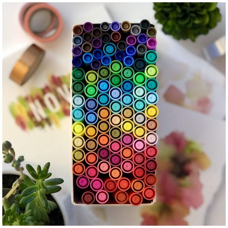 100 cores lindas você não ficará sem escolha com muitas variações sutis de cores em tons escuros, claros ou pastéis. Use como um marcador para cores sólidas e misturas de cores ou adicione água para um efeito de aquarela somente quando em papel de aquarela pesado, criando ainda mais tons, gradações e efeitos ombre