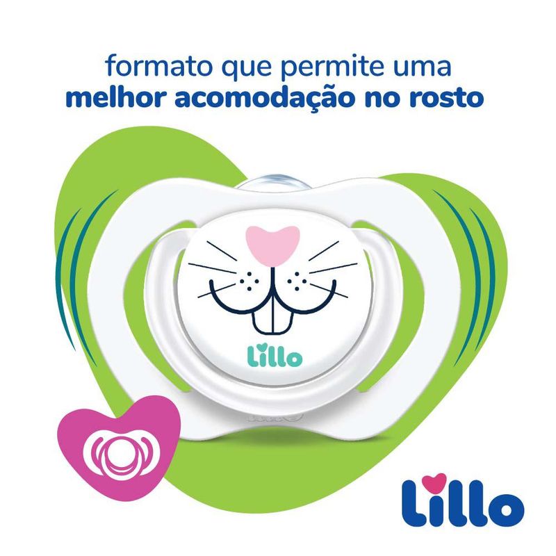 O Kit com 2 Chupetas Anatômicas Design Selfie Lillo possui grandes canais de ventilação para permitir que a pele do bebê respire e bordas arredondadas que possibilitam uma melhor acomodação no rosto. Seu bico é com formato anatômico em silicone macio e flexível. Os desenhos modernos e coloridos ilustram o botão da chupeta, sendo ideais para a família tirar uma selfie e eternizar esse período do pequeno. Indicada para bebês maiores de 6 meses. Produto livre de Bisfenol-A.
