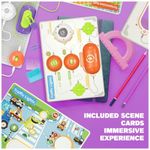 O conjunto acompanha manual colorido e quatro cartas indicadoras que apresentam diversas maneiras de montar circuitos, servindo como guia visual para crianças e adultos durante as atividades. A alimentação é feita por pilhas AA (não incluídas), em baixa tensão, adequada ao uso em casa ou em sala de aula para introduzir conceitos de eletricidade, raciocínio lógico e resolução de problemas.