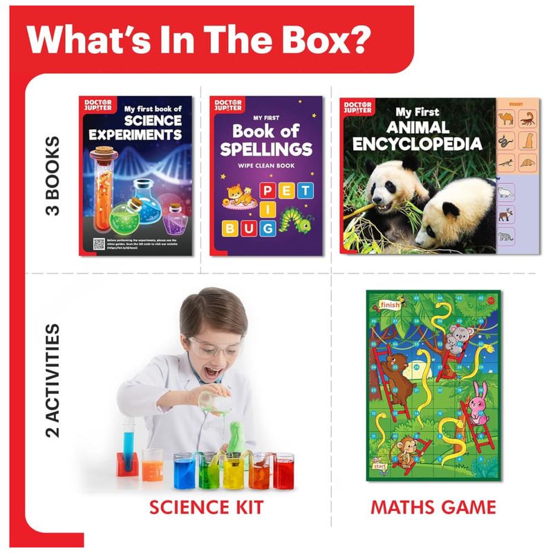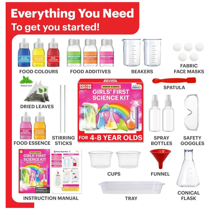 Com o kit Doctor Jupiter Girls First Science, sua filha terá a oportunidade de realizar 50 experimentos científicos divertidos e seguros, sem precisar usar telas. Este kit científico é feito com equipamentos de alta qualidade e produtos químicos seguros, ajudando a promover um amor precoce pela ciência.