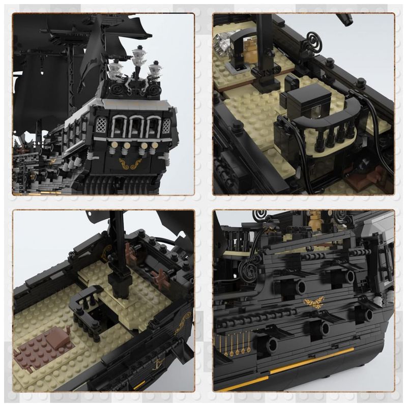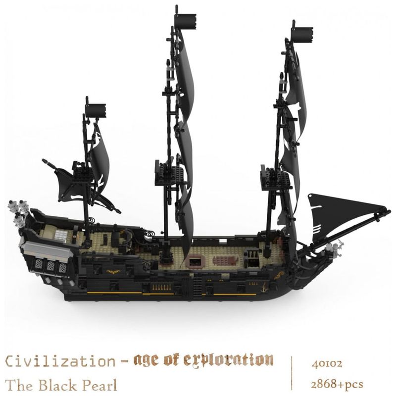 1O navio JMBricklayer 40102 contendo 2.868 tijolos. Este conjunto de navio traz a imagem espetacular do navio do filme para a vida real. Nosso navio é rico em estrutura e cada detalhe da proa, popa, velas e decoração interior é realista.